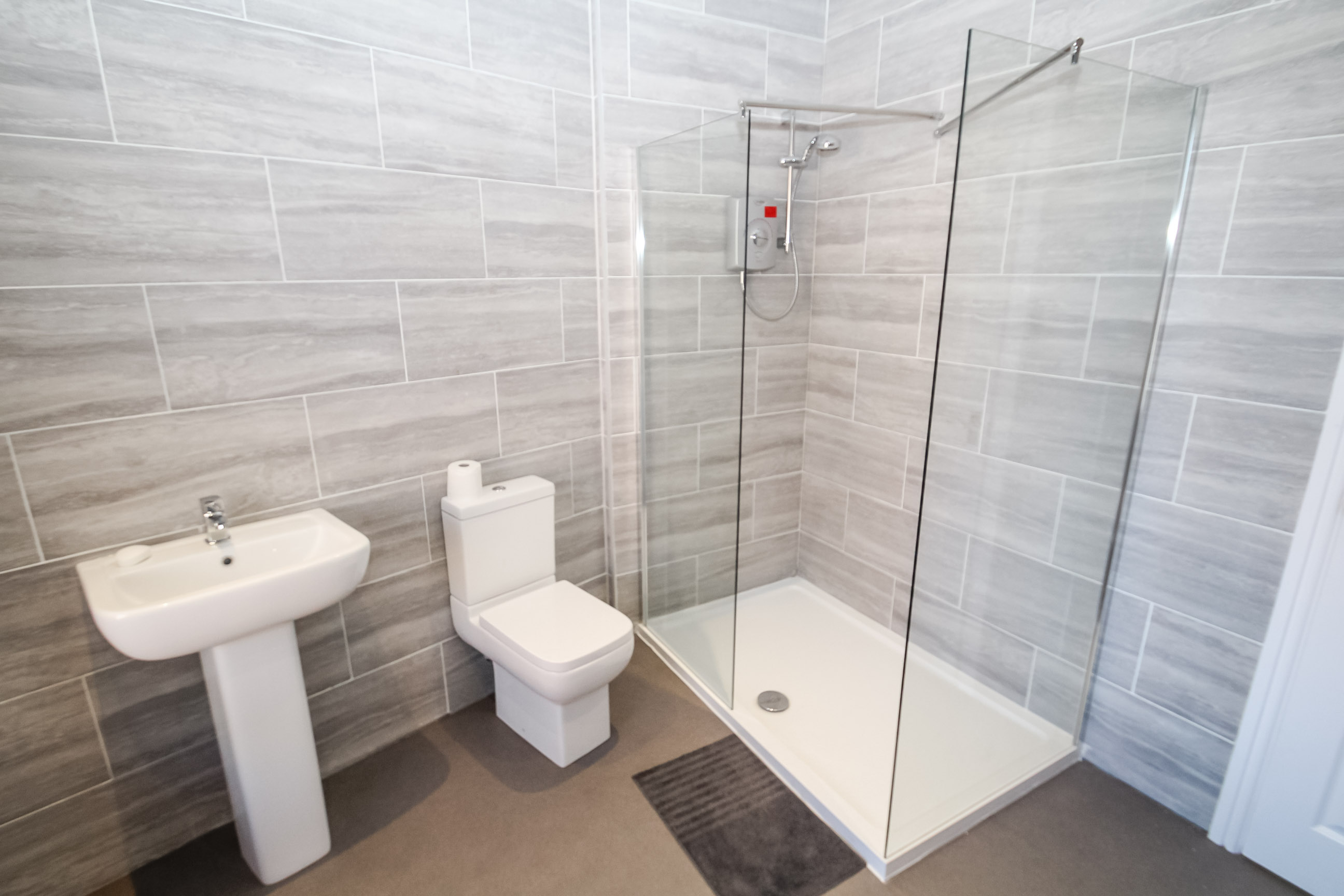 One Bathroom is located on the lower ground floor to accommodate the basement Bedroom and comprises of a bath with overhead shower, sink basin and WC. A further shower room is located on the first floor with shower cubicle, WC and sink basin.