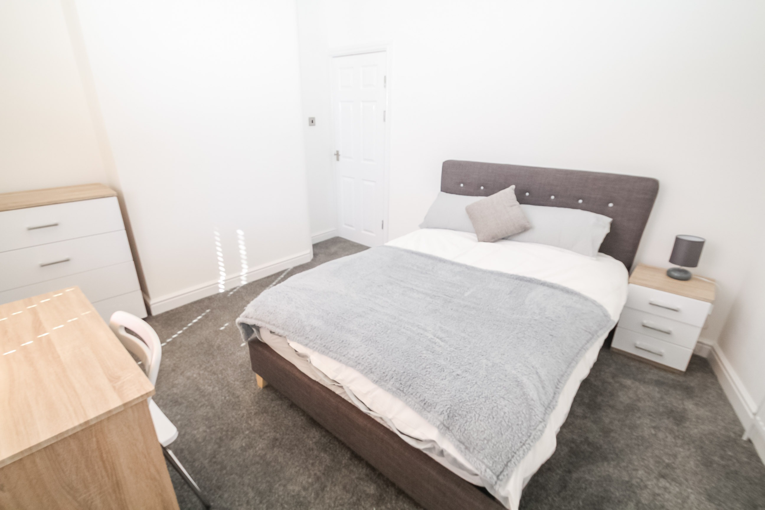 Five good sized bedrooms coming neutrally decorated with carpet flooring. The bedrooms are fully furnished with a double bed, wardrobe, TV, chest of drawers and desk with chair.