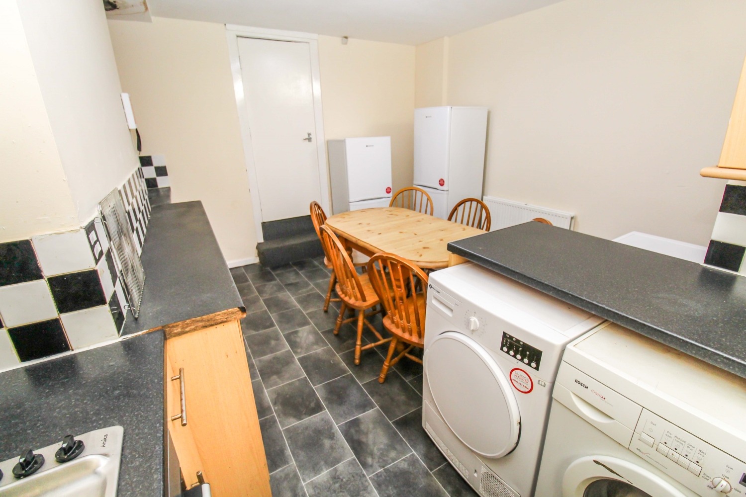 Kitchen comprises of Fridge freezer, Oven and hob, Washing machine and separate Dryer. Access to porch and rear garden.